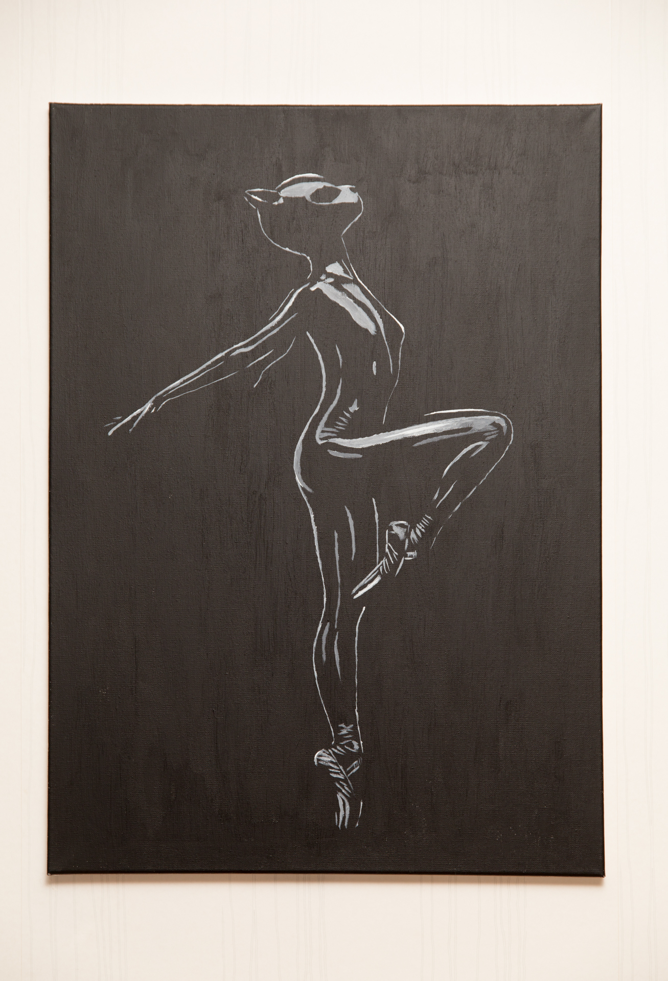 Maalauksen tausta on musta. Valokuvassa näkyy valon heijastus.