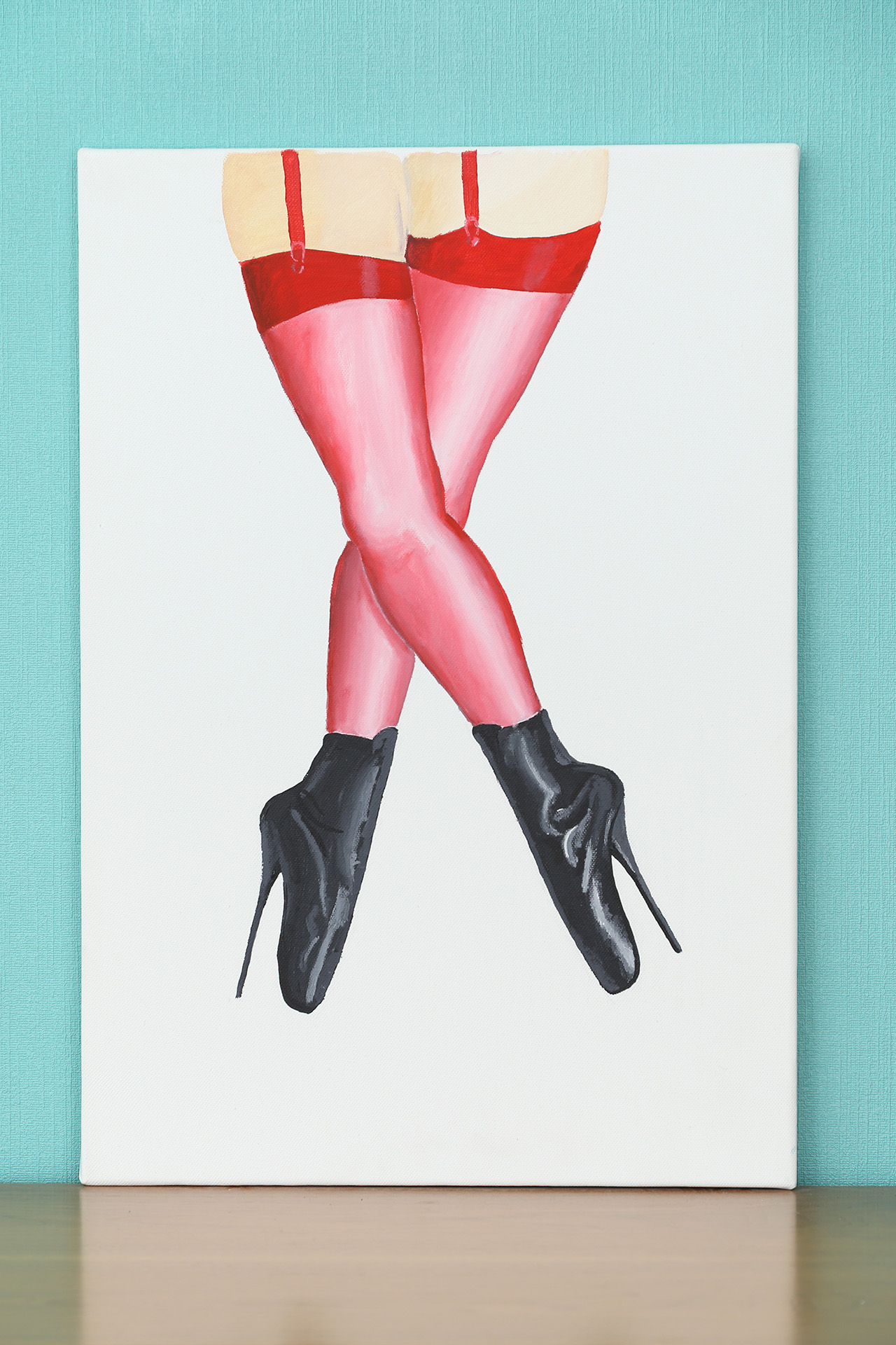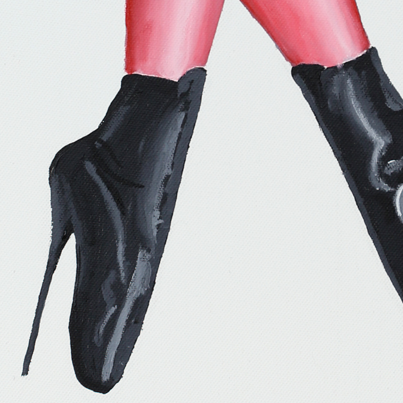 Black ballet ankle boots with red stockings